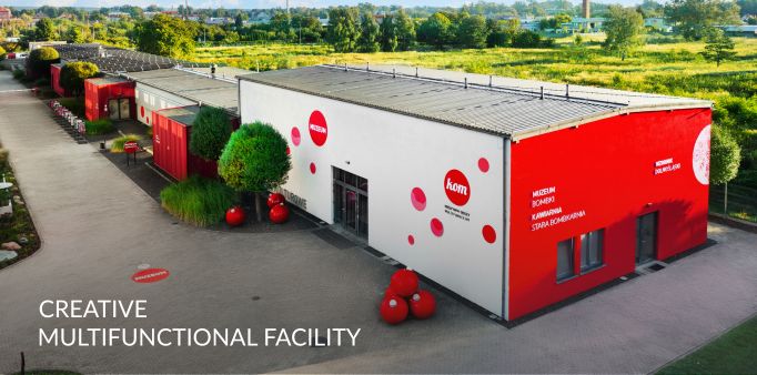 KOM is located Milicz, in loft-style interiors of a former Christmas ball factory. Here, in the largest manufacture of glass Christmas decorations, Christmas balls were being formed and decorated by hand for over 50 years and sold to multiple countries all over the world. When the assembly halls of the factory were emptied, a perfect space for creative thinking and working emerged. Since that time, KOM has been focusing on implementing modern teaching methods and educational programs for schools and kindergartens, providing creative play for children, business meetings and a relaxation spot for tourists visiting Baryczy Valley.